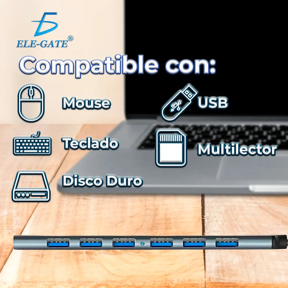 - 7 Puertos USB 3.0 de Alta Velocidad: Permite conectar hasta 7 dispositivos al mismo tiempo con velocidades de transferencia de datos de hasta 5 Gbps.