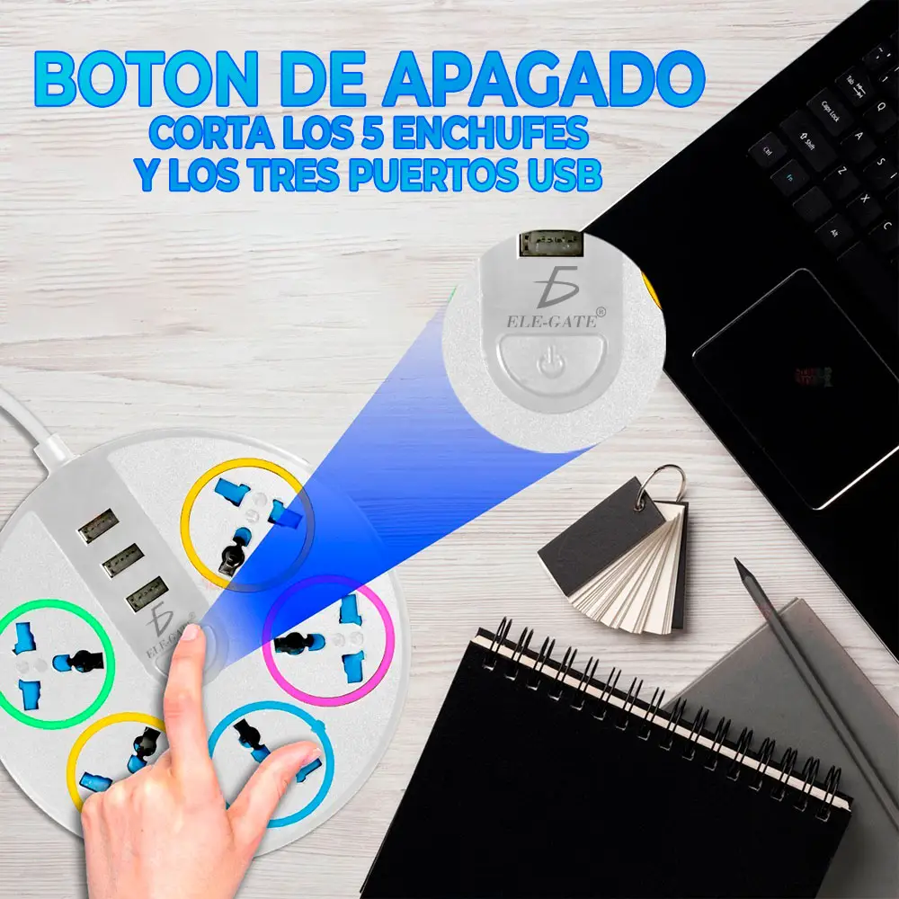 Multicontacto Circular Multiusos 5 Contactos + 3 Puertos Usb