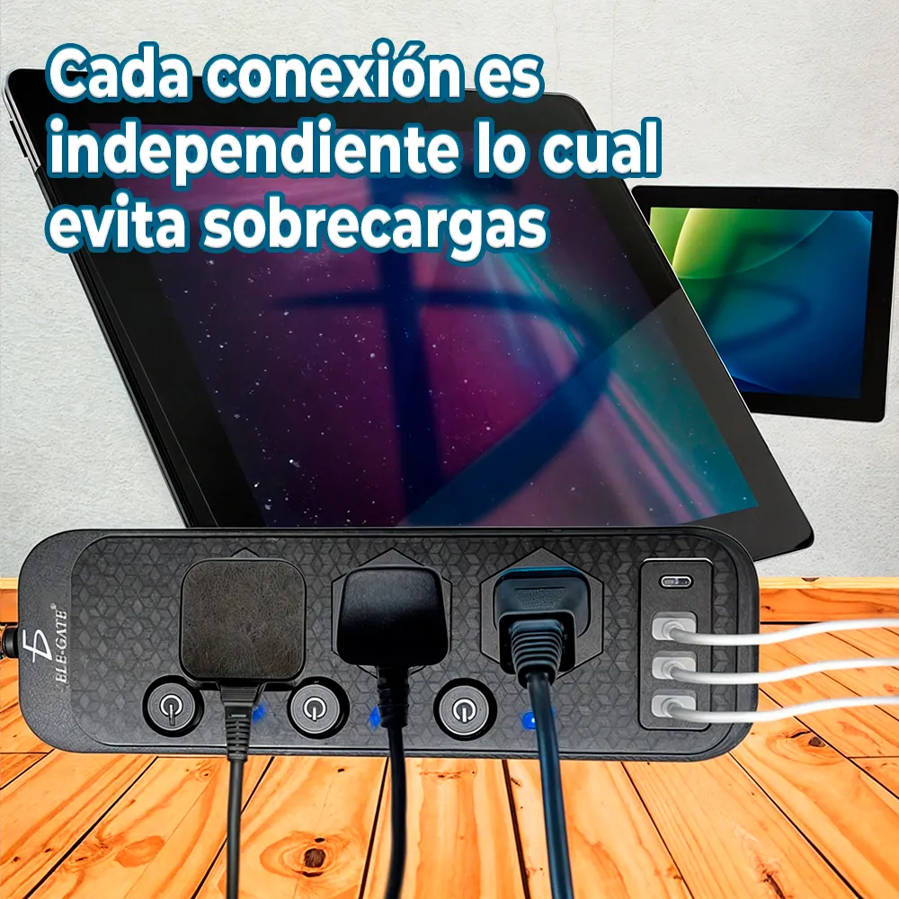 - Protección contra Sobrecargas: Equipado con un sistema de seguridad que protege tus dispositivos de picos de voltaje y sobrecargas eléctricas.