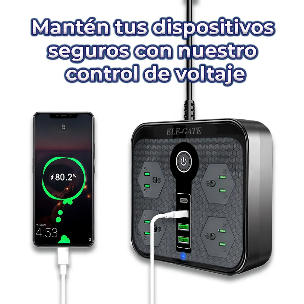 - Carga Simultánea: Permite cargar hasta 8 dispositivos a la vez, optimizando el espacio y reduciendo el desorden de cables.