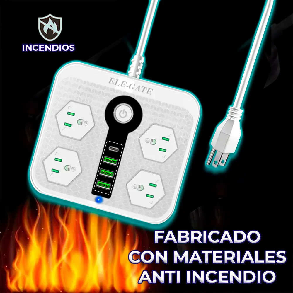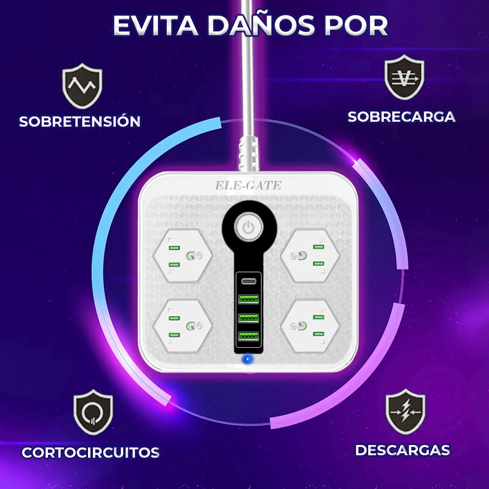 El Multicontacto de Alimentación Universal con 4 Clavijas, 3 Puertos USB y 1 Puerto Tipo C ofrece una solución confiable y segura para cargar y conectar varios dispositivos al mismo tiempo, manteniendo la máxima eficiencia en un diseño práctico.
