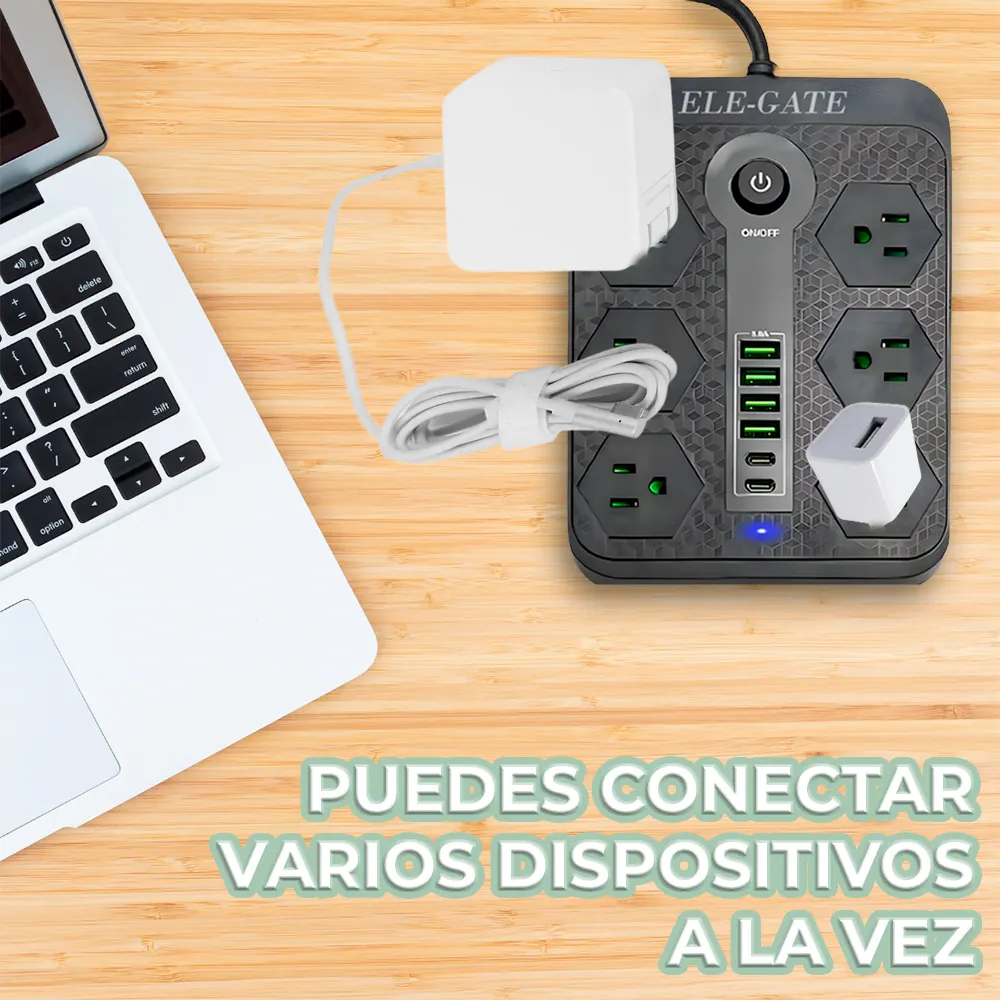 - Versatilidad de Uso: Ideal para oficinas, hogares, o viajes internacionales donde se necesite cargar múltiples dispositivos a la vez.