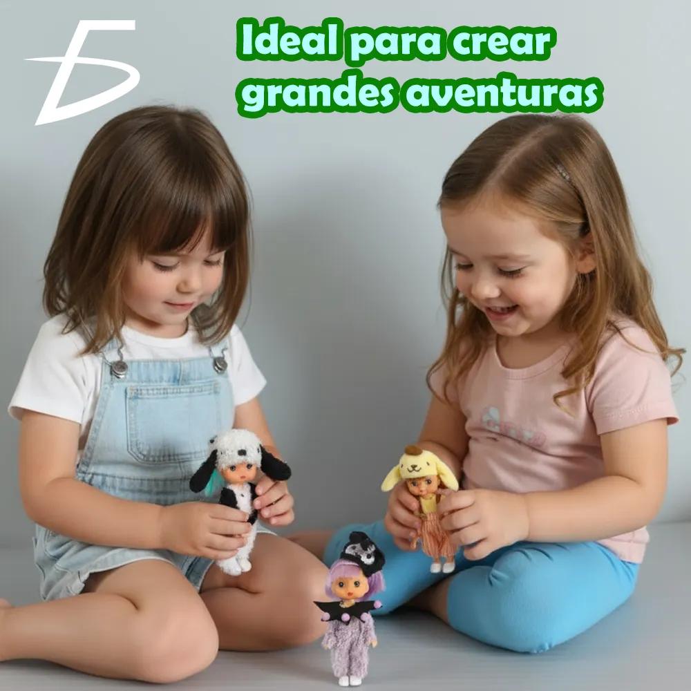 Con detalles finos en el cabello, rostro y vestimenta, estas mini muñecas son tan encantadoras que robarán miradas y elogios. Su tamaño compacto las hace perfectas para llevar a todas partes o decorar tu tocador.