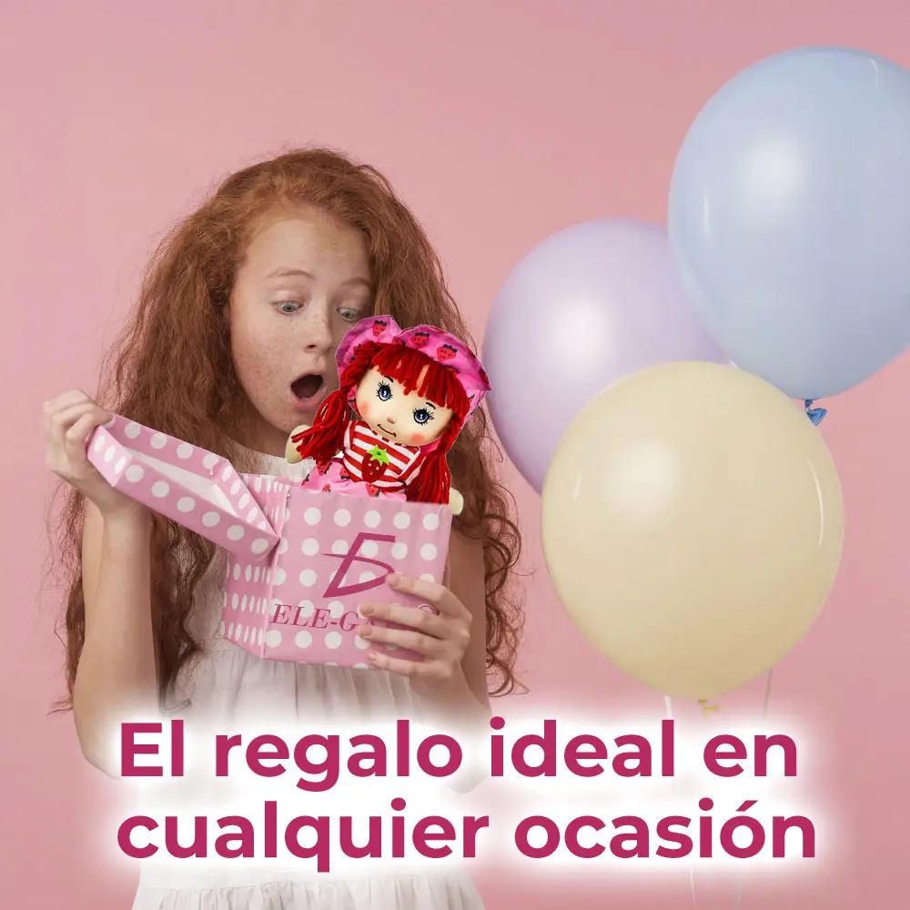 Las muñecas de trapo son un regalo ideal que ha encantado a niños y niñas durante generaciones. Esta adorable muñeca de tela de 25 cm es ligera y fácil de llevar a todas partes, perfecta para acompañar a tu pequeño en sus aventuras. Hecha con materiales de alta calidad, como algodón y lana, esta muñeca es suave al tacto y segura para jugar.
