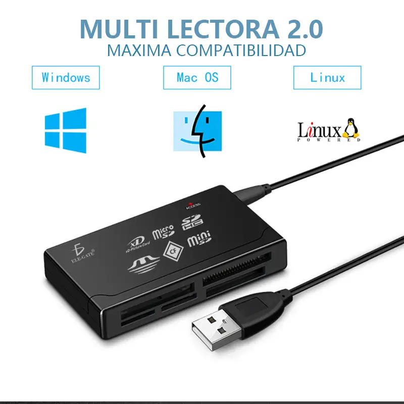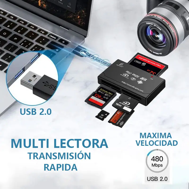 Mutilector Externo Memorias A Usb 2.0 Soporte Micro SD MMC, RS-MMC, Mini SD, T-Flash, MS/MS PRO, MS Duo / MS PRO Duo, M2