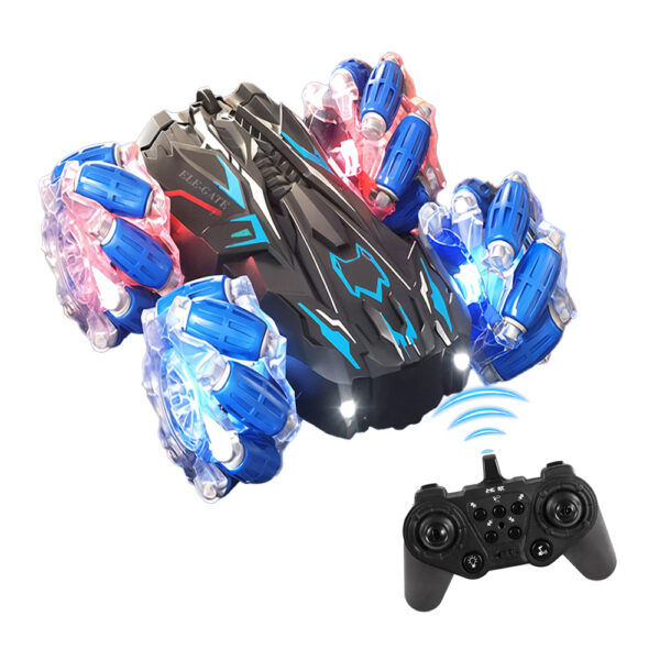 El Coche de Acrobacias RC con Control , Luz y Humo lleva la diversión a otro nivel. Su tecnología 4WD de doble cara, luces RGB, música y sistema de spray convierten cada sesión de juego en una experiencia impresionante.