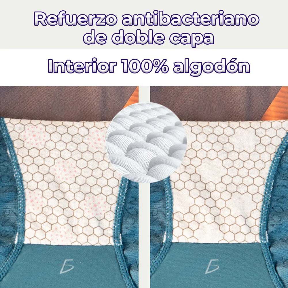 - Protección doble de algodón: La capa doble de algodón en la entrepierna proporciona una absorción efectiva de la humedad y ayuda a mantener la frescura y la sequedad durante todo el día. El algodón es un material transpirable y suave que es gentil con la piel sensible
