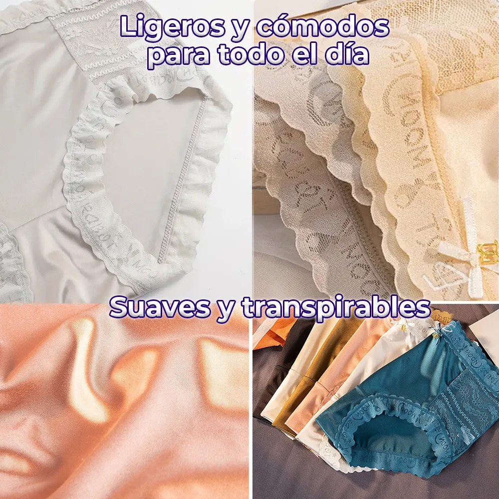 Panti con encaje y satén con encaje semi trasparente y protección doble de algodón para mantenerte fresca y seca