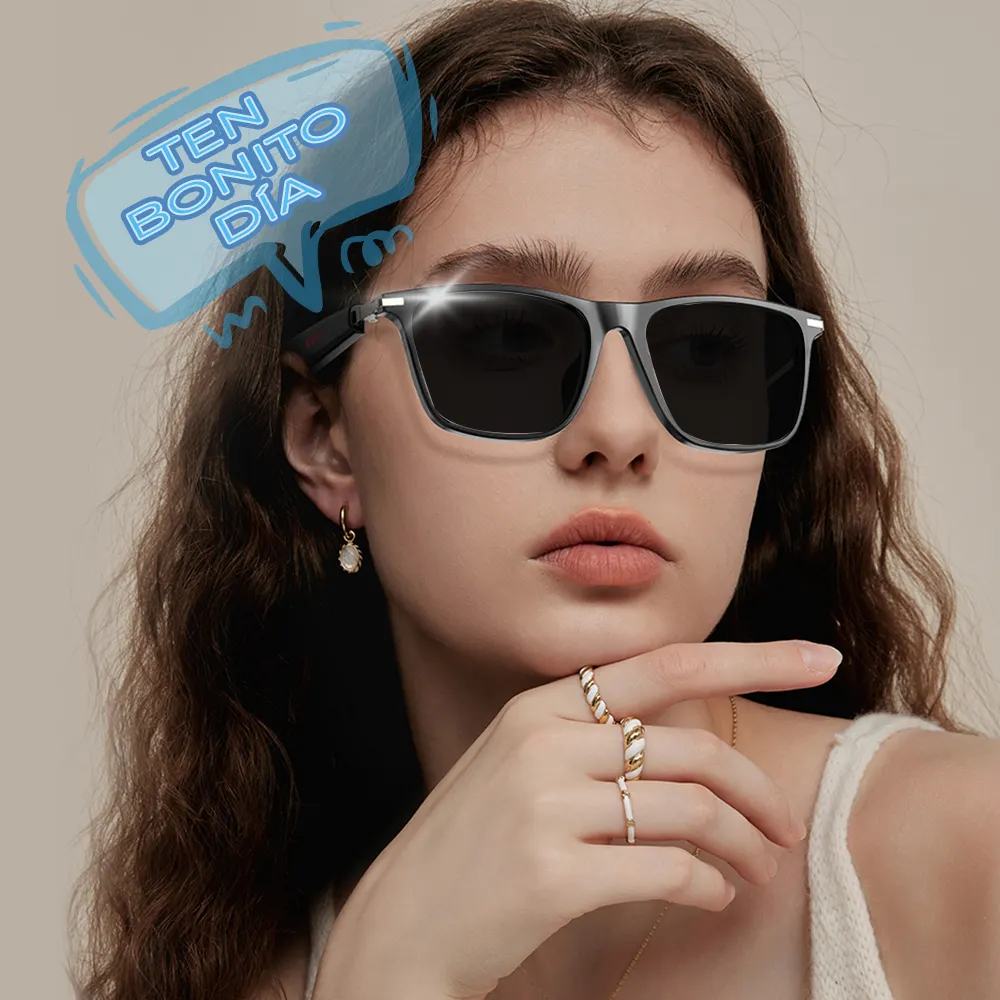 Lentes de sol inteligentes con Bluetooth, bocinas y filtro de luz azul. Control táctil, llamadas manos libres y protección ocular polarizada.