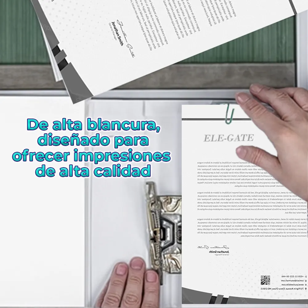 - Compatibilidad: Estas hojas son ideales para una variedad de usos, incluyendo documentos comerciales, escolares, personales y más. Son compatibles con una amplia gama de impresoras láser y de inyección de tinta, así como con copiadoras.