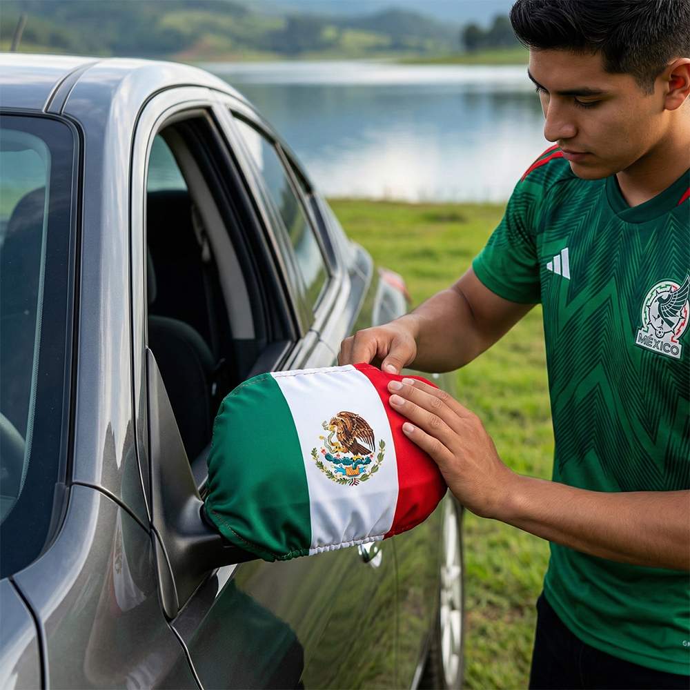 Dale un toque patriótico a tu vehículo con este par de fundas para retrovisores con estampado de la bandera de México 🇲🇽. Diseñadas para proteger y decorar al mismo tiempo, son el accesorio perfecto para demostrar tu pasión por México en cualquier ocasión.