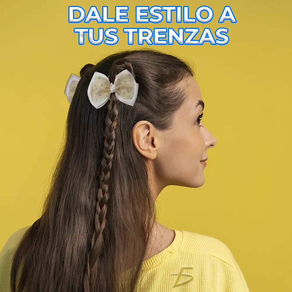 Descubre nuestro encantador par de moños dobles con encaje transparente, decorados con brillos! Perfectos para elevar tu peinado favorito, ya sea para una reunión especial o para lucir impecable en el colegio. El encaje transparente y los brillos añaden un toque coqueto y elegante, haciendo que tu estilo resalte en cualquier ocasión. Aseguran un ajuste cómodo y duradero, mientras complementan tu look con un acabado sofisticado. ¡Realza tu belleza con estos moños únicos y haz cada día aún más especial
