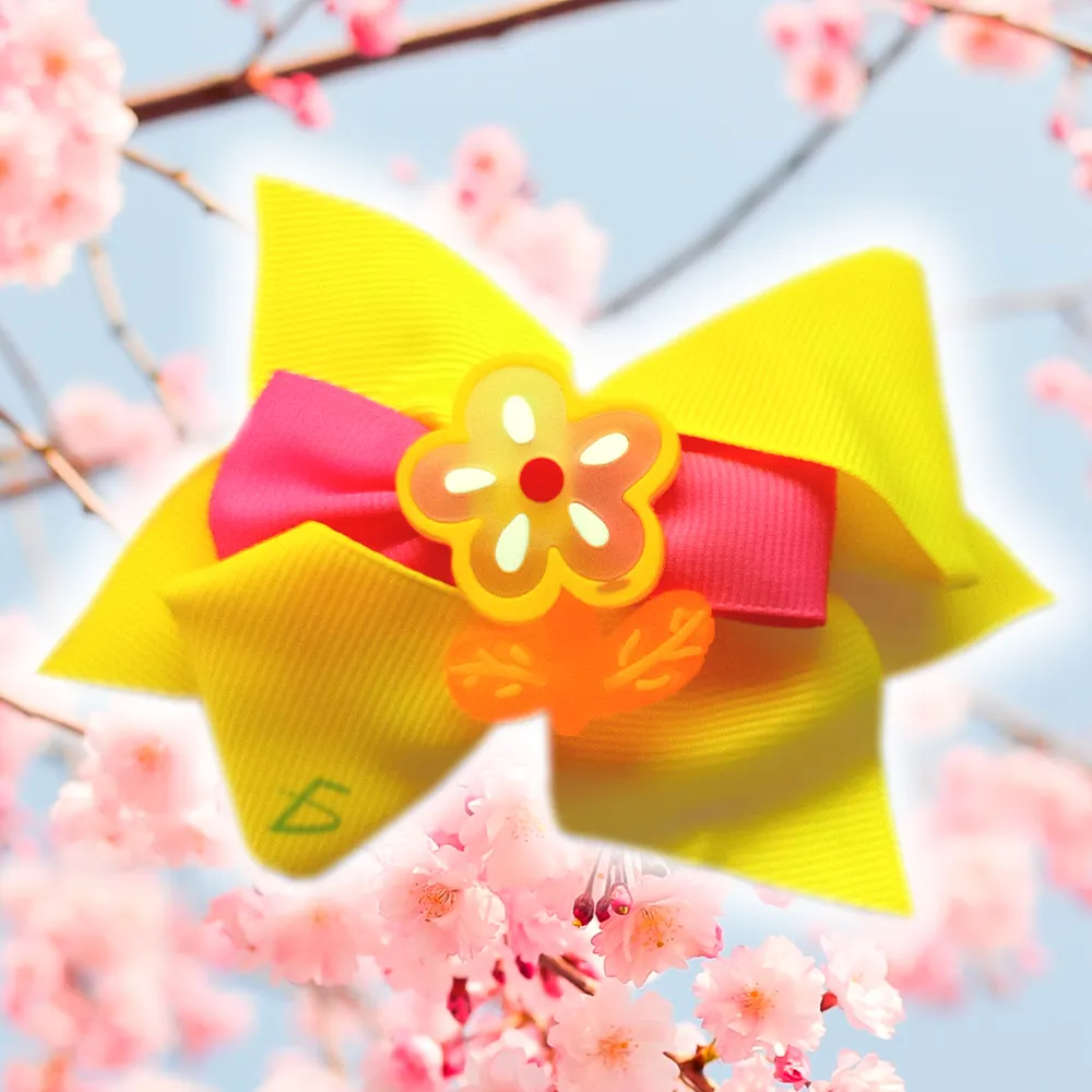 - Diseño coqueto: Moños adornados con una delicada flor de acrílico que añade un toque elegante y femenino.