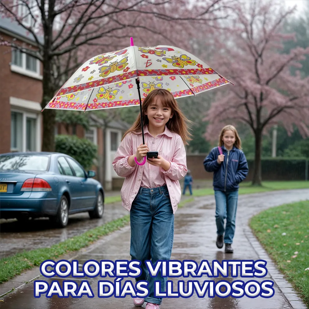 Este paraguas combina la máxima protección contra los rayos UV dañinos con la capacidad de repeler el agua, asegurando que estés preparado para enfrentar todos los elementos con estilo y confort. Ideal para mantener a tus hijos protegidos y entretenidos bajo la lluvia o el sol. Perfecto para quienes buscan calidad, funcionalidad y diseño encantador en cada detalle.
