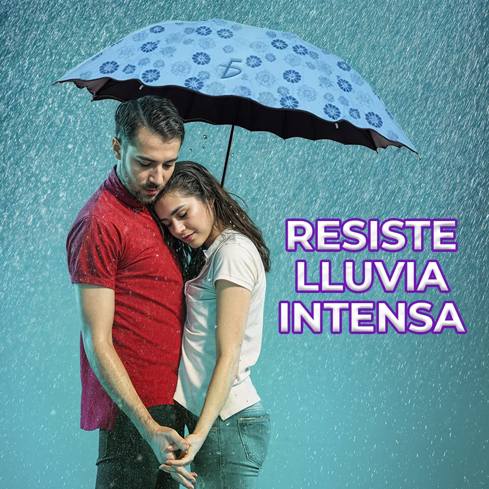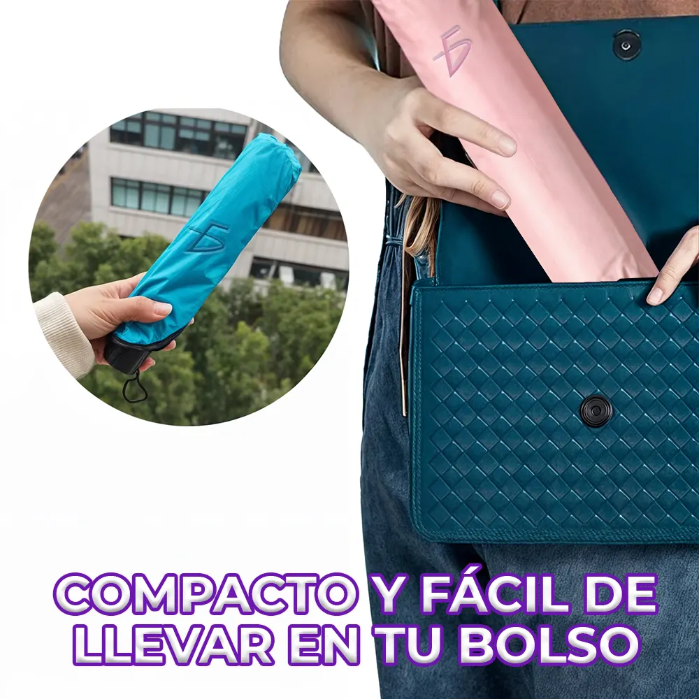Sombrilla mágica que cambia de color con la lluvia, compacta y portátil, ideal para cualquier ocasión.