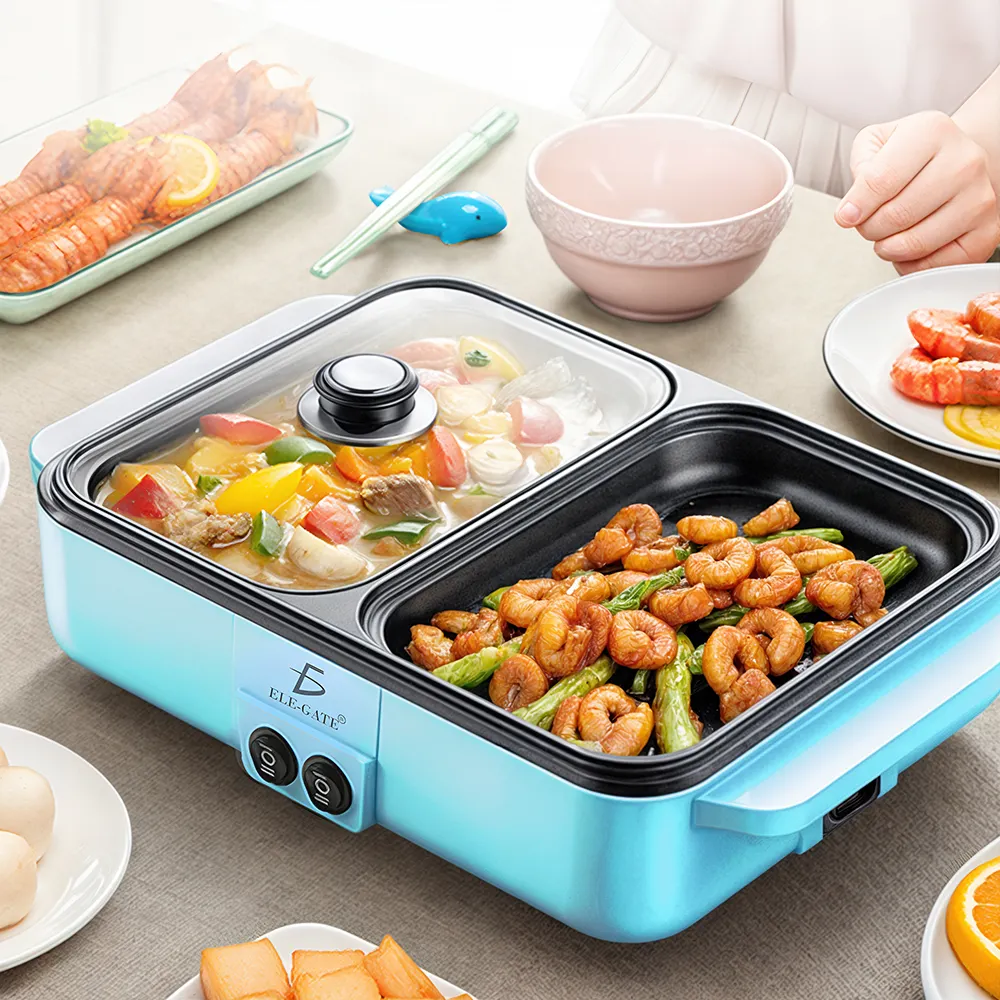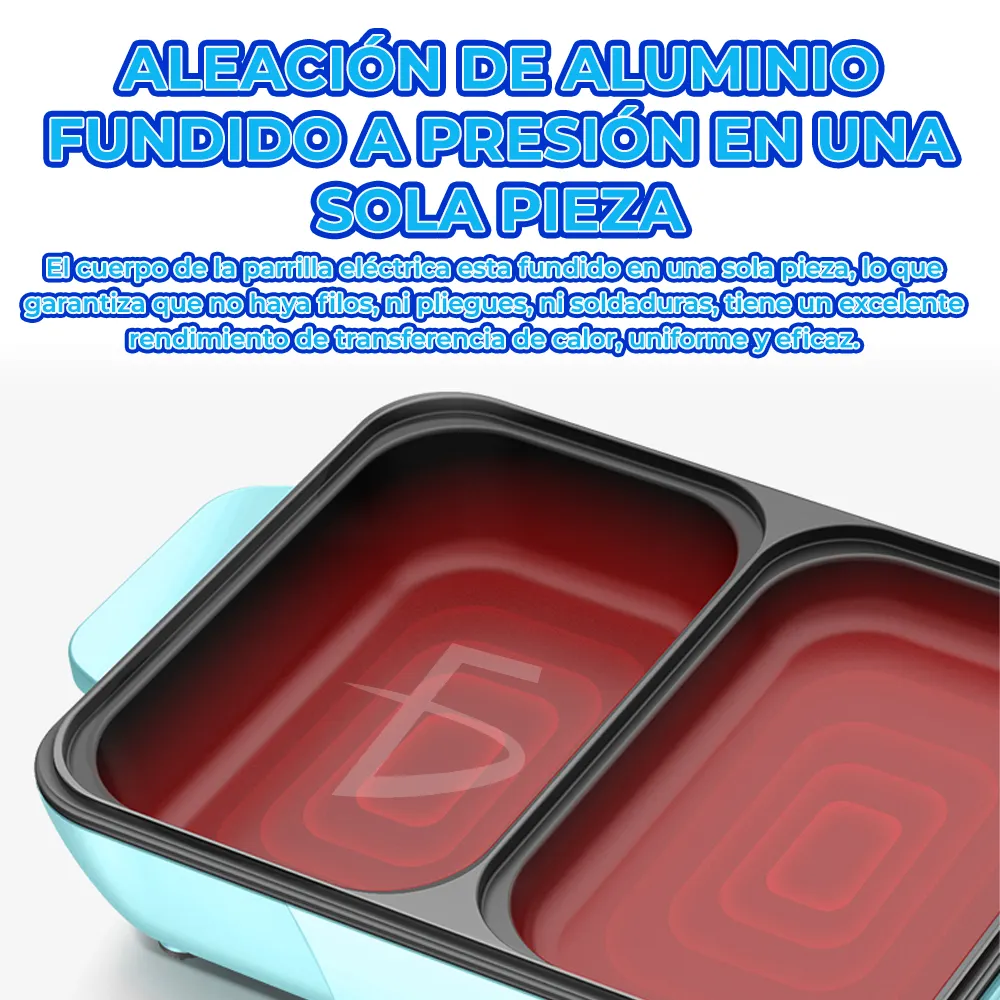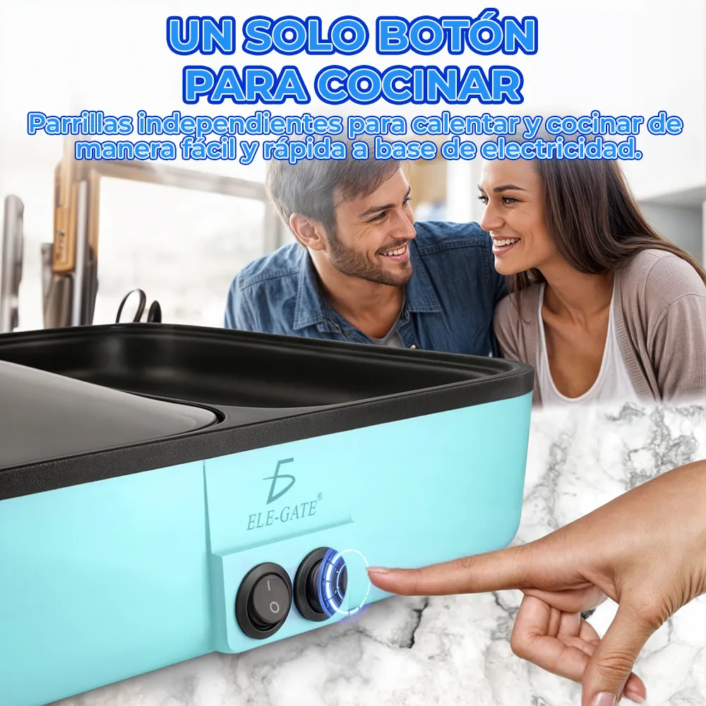 Ideal para cocinar y calentar al mismo tiempo y de manera segura con esta parrilla con funcionamiento a base de electricidad. Parrilla Eléctrica 2 en 1 Cocina y Calienta.