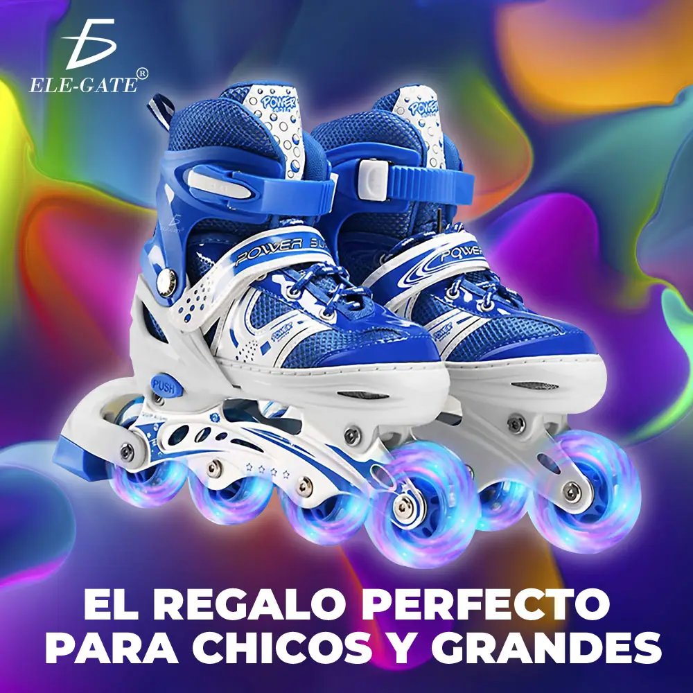 Patínes En Línea Ajustable 6 Ruedas Con Kit Protección Niños Size:L