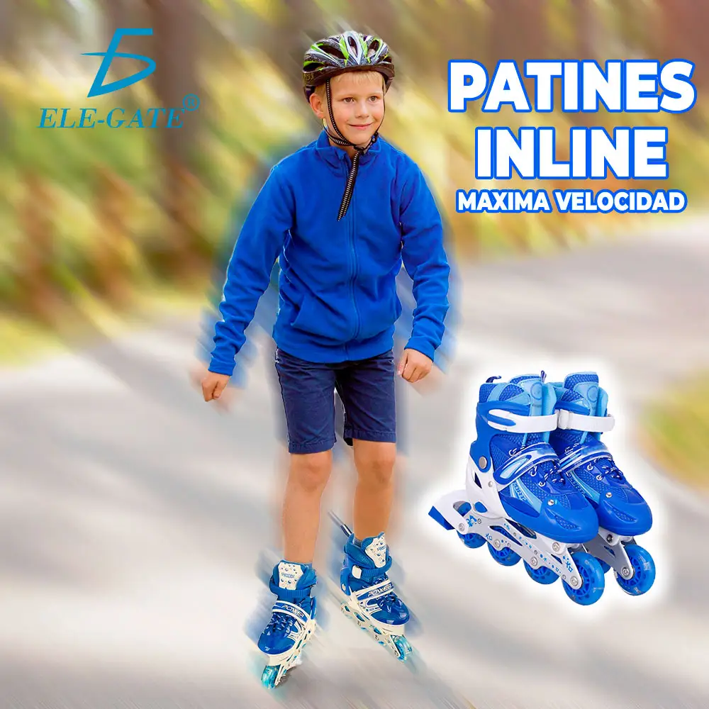 Patínes En Línea Ajustable 6 Ruedas Con Kit Protección Niños Size:S