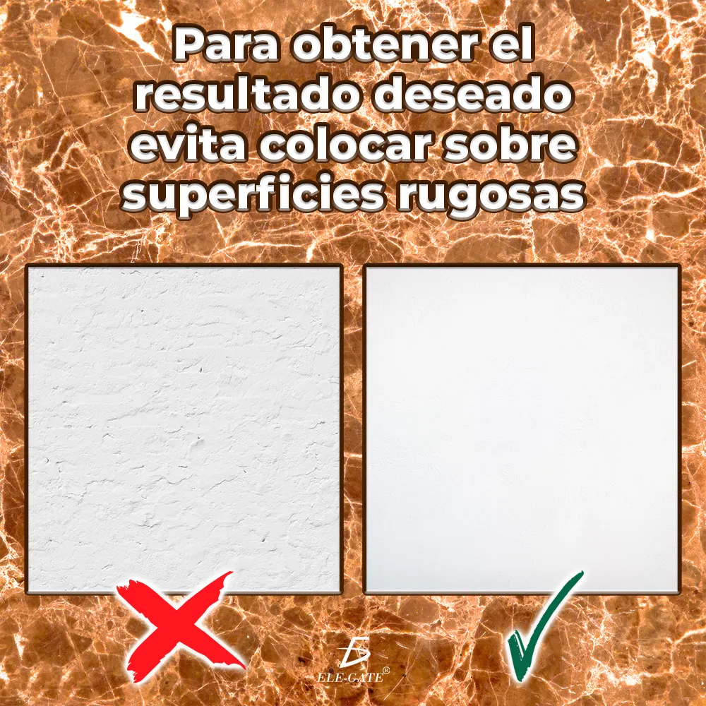 - Fácil de Aplicar: Es autoadhesivo, lo que significa que se puede aplicar sin necesidad de pegamento, sin burbujas y sin ensuciar.