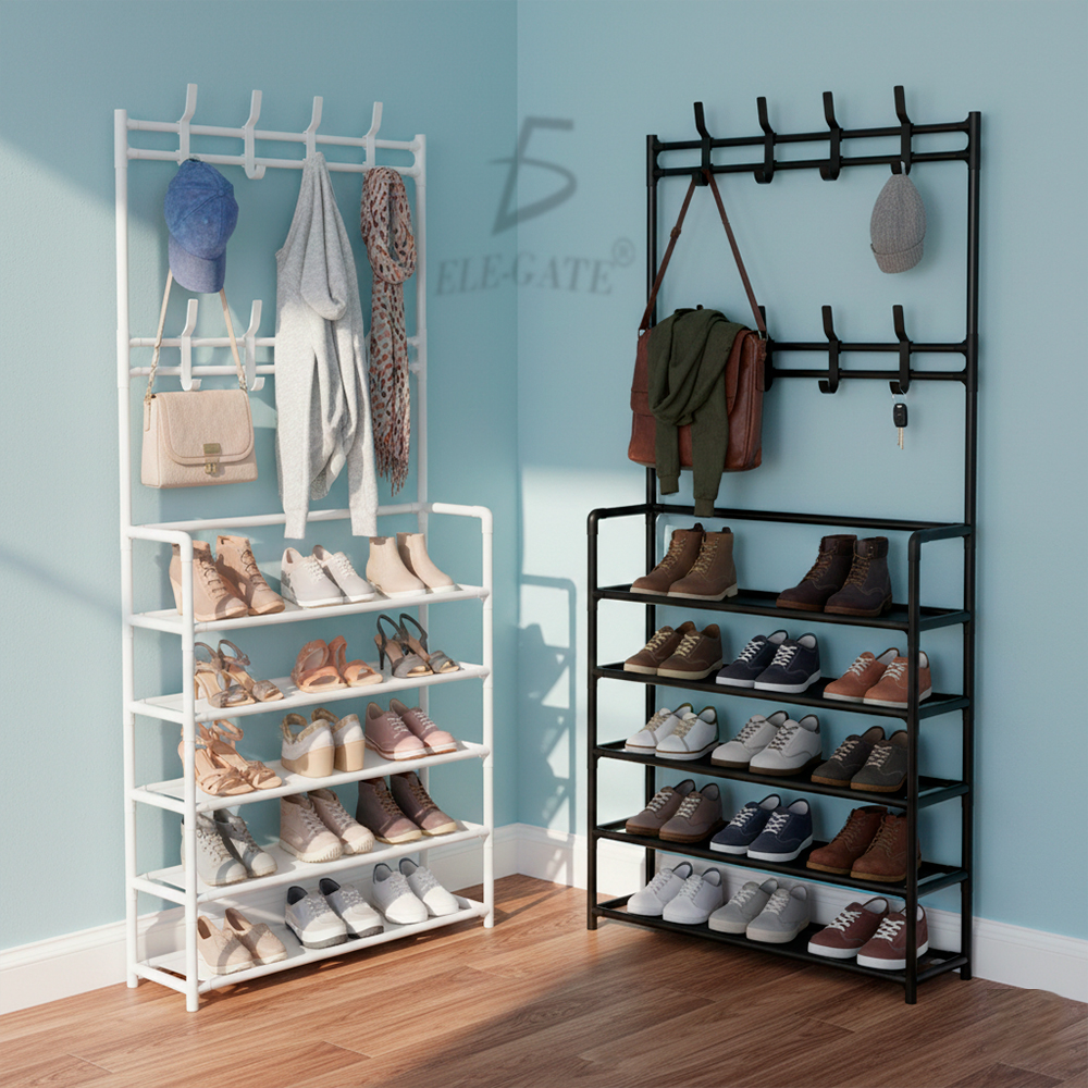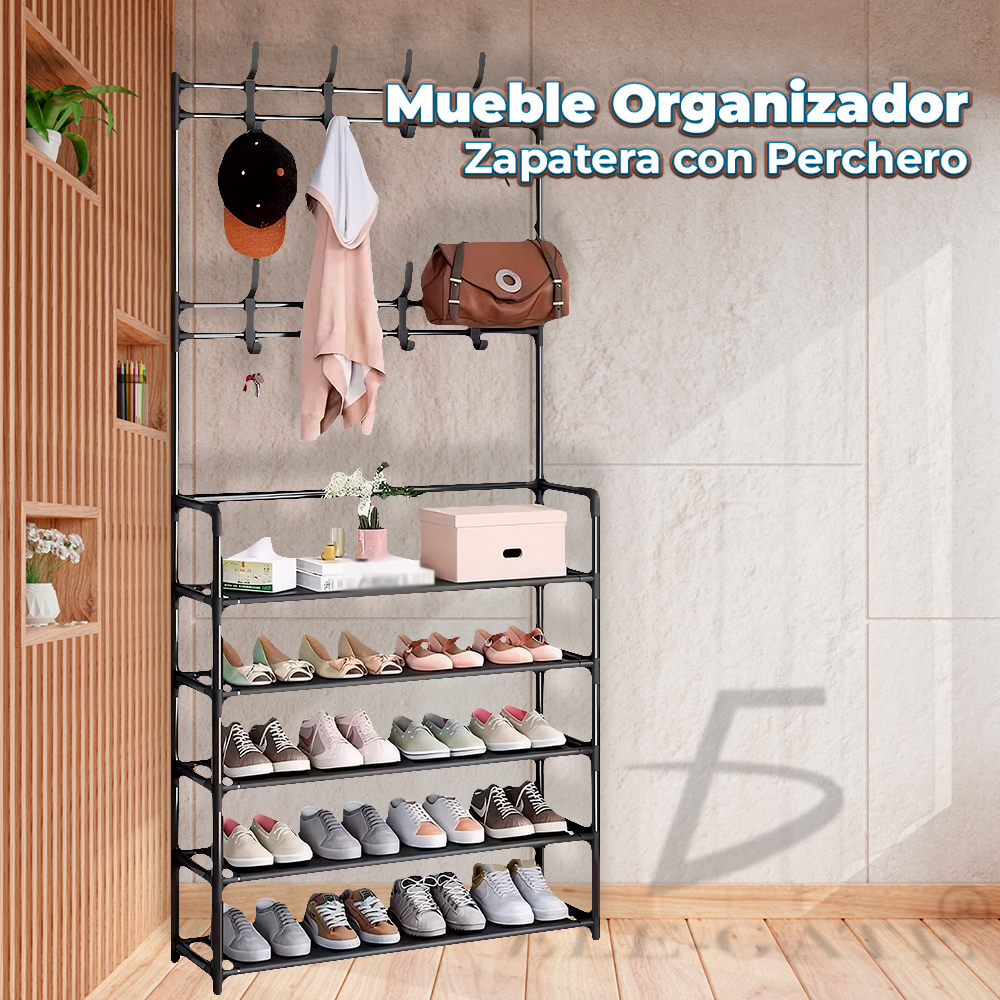 Mantén tu entrada ordenada y funcional con este perchero multifuncional de pie 3 en 1, diseñado para aprovechar al máximo el espacio vertical. Combina perchero, barra para colgar ropa y zapatera en una sola estructura resistente y moderna, ideal para hogares, departamentos u oficinas.