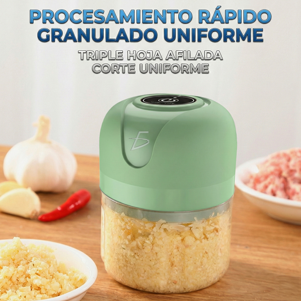 Olvídate de picar ajo manualmente. Con solo presionar el botón superior, la picadora tritura automáticamente el ajo y otros ingredientes, ahorrándote tiempo y esfuerzo en la cocina.