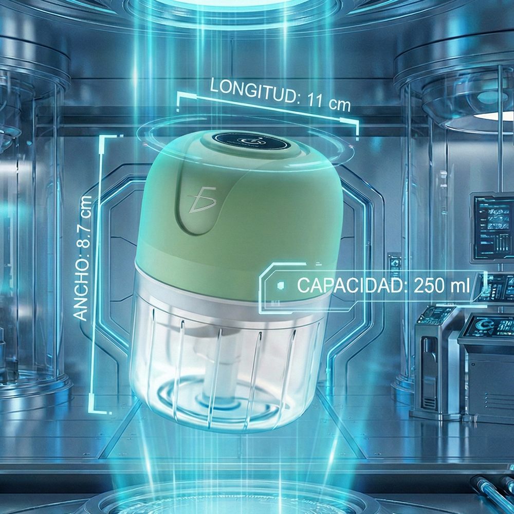 La Picadora Eléctrica 250ML USB es la herramienta ideal para facilitar tus preparaciones diarias. Compacta, potente y recargable, te permite triturar y picar alimentos con solo presionar un botón.