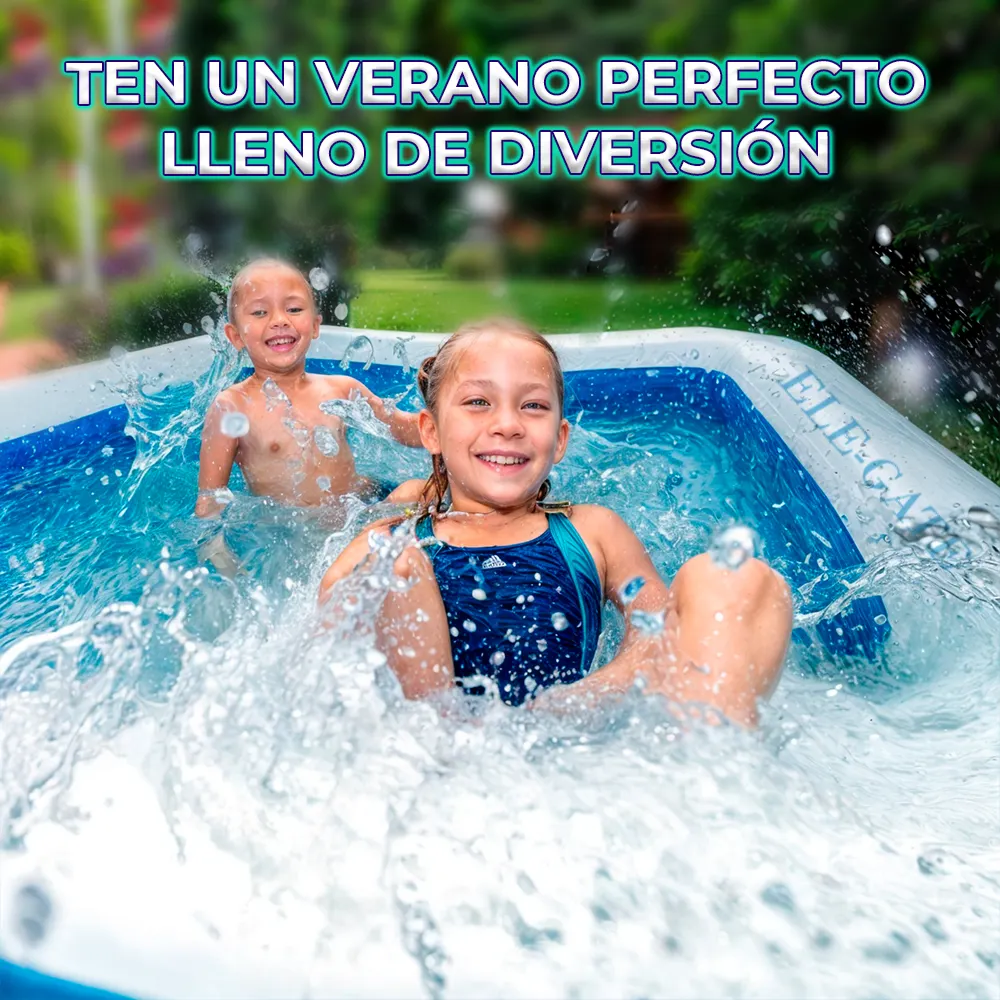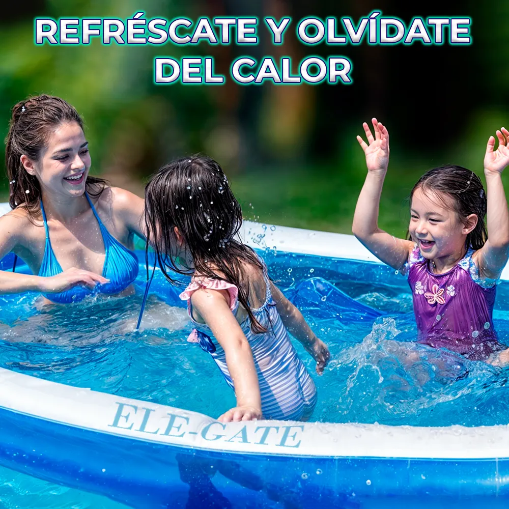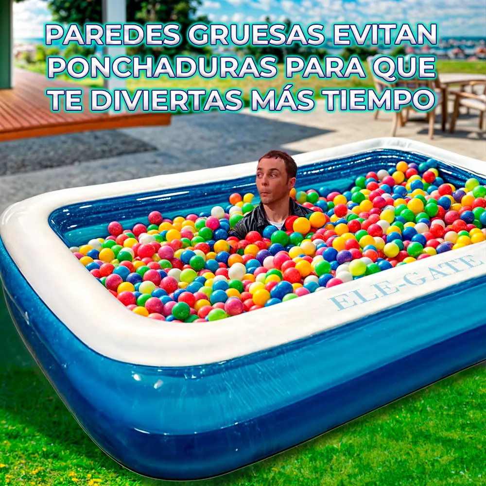 - Diversión para Toda la Familia: Ya sea que estés buscando refrescarte en un día caluroso, enseñar a tus hijos a nadar o simplemente relajarte en el agua, nuestra piscina inflable es la opción ideal para disfrutar de momentos inolvidables en familia sin salir de casa.