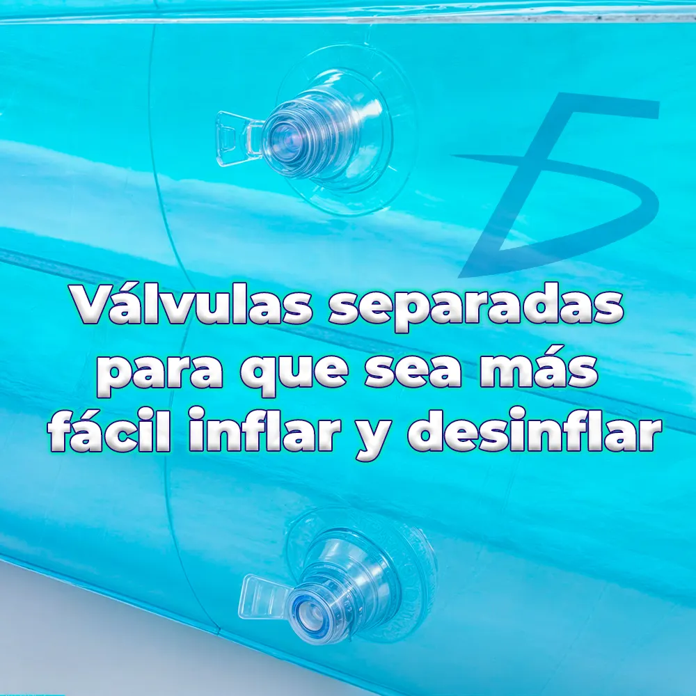 - Válvula de Fácil Inflado: Equipada con una válvula de fácil inflado, montar esta piscina es rápido y sencillo. No necesitas herramientas especiales ni equipos complicados. Simplemente infla la piscina con una bomba de aire estándar y estará lista para llenarla de agua en cuestión de minutos.
