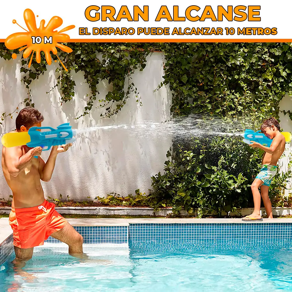 Alimentado por un motor, este tipo de pistola de agua necesita bombeo y luego podrás tirar del gatillo y apuntar. Es más fácil de operar y usar.