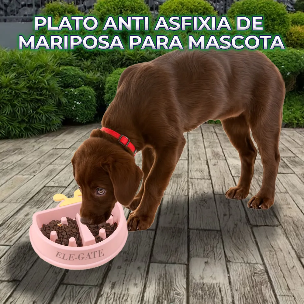 Comedero de croquetas lento en forma de Mariposa de silicón resistente y anti deslizante para perros