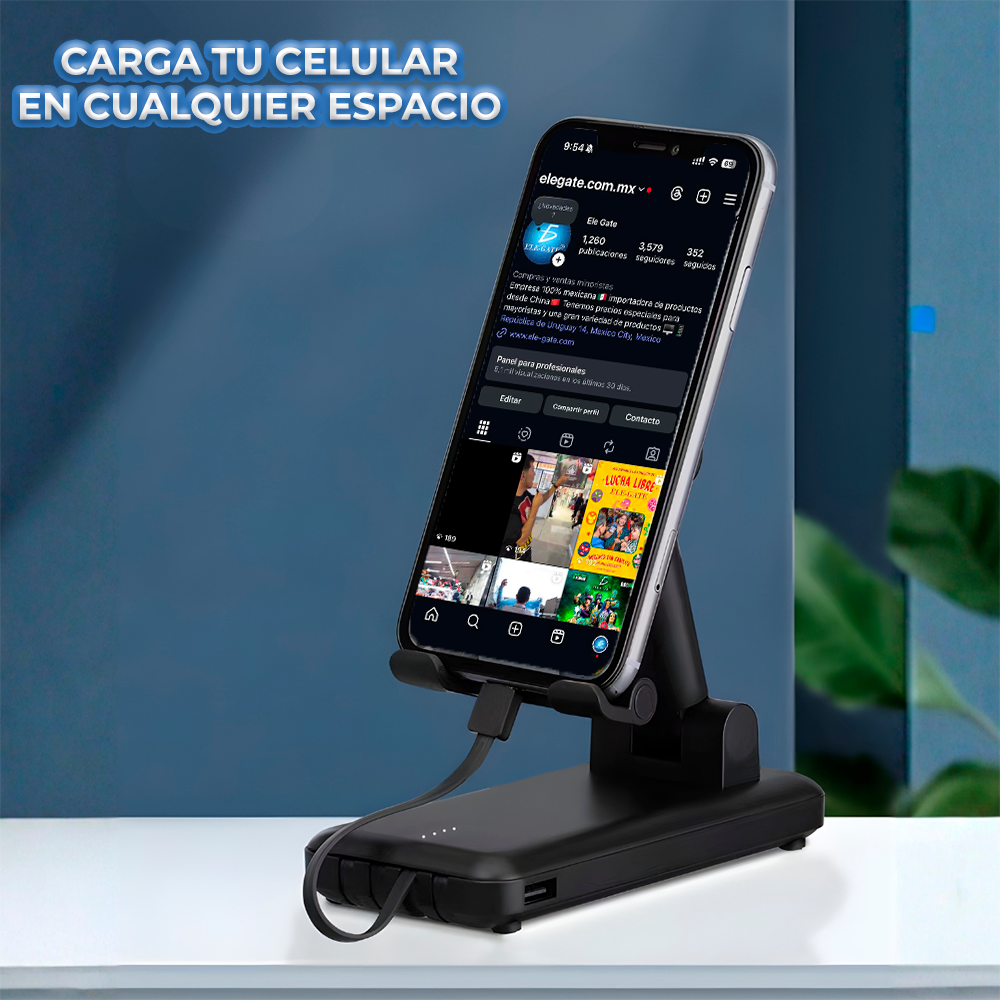 Carga, apoya y disfruta: todo en un solo dispositivo con este Power Bank 2 en 1 de 10000 mAh.