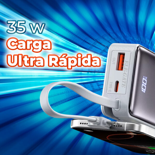 Lleva la energía contigo con esta batería portátil de 10000 mAh, diseñada para ofrecer gran capacidad en un cuerpo ultracompacto y ligero. Su potencia permite cargar tu smartphone o tablet varias veces, siendo el compañero perfecto para viajes, salidas o días largos fuera de casa.