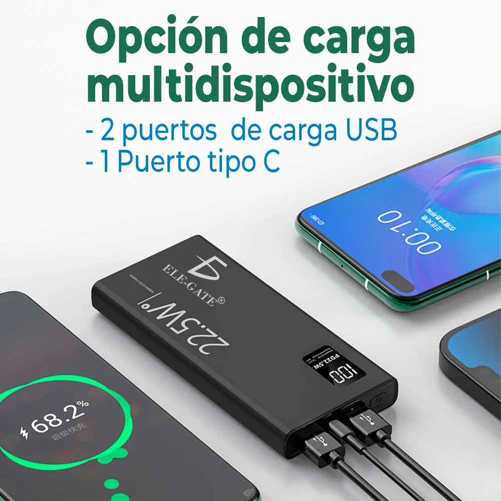 - Carga Rápida: Carga tus dispositivos a alta velocidad para que estén listos cuando los necesites.