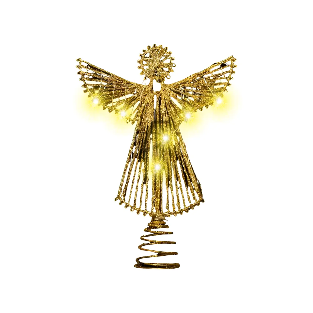 Dale un toque elegante y sofisticado a tu árbol de Navidad con esta hermosa punta de ángel dorado con las alas abiertas y luces LED cálidas. Gracias a su acabado metálico detallado, se convierte en una pieza protagónica que resalta desde cualquier rincón de la habitación.