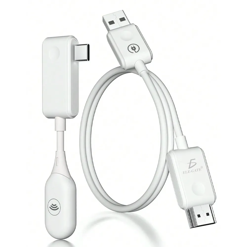 - PLUG AND PLAY: emparejamiento automático. no es necesario descargar ninguna aplicación, controlador o software, ni conexión WiFi, conéctese para obtener la comodidad de la transmisión inalámbrica. Conecte el transmisor al puerto tipo C de su teléfono, tableta, computadora portátil, conecte el receptor al puerto de interfaz multimedia HD de su HDTV, proyector, monitor y luego conecte la fuente de alimentación.