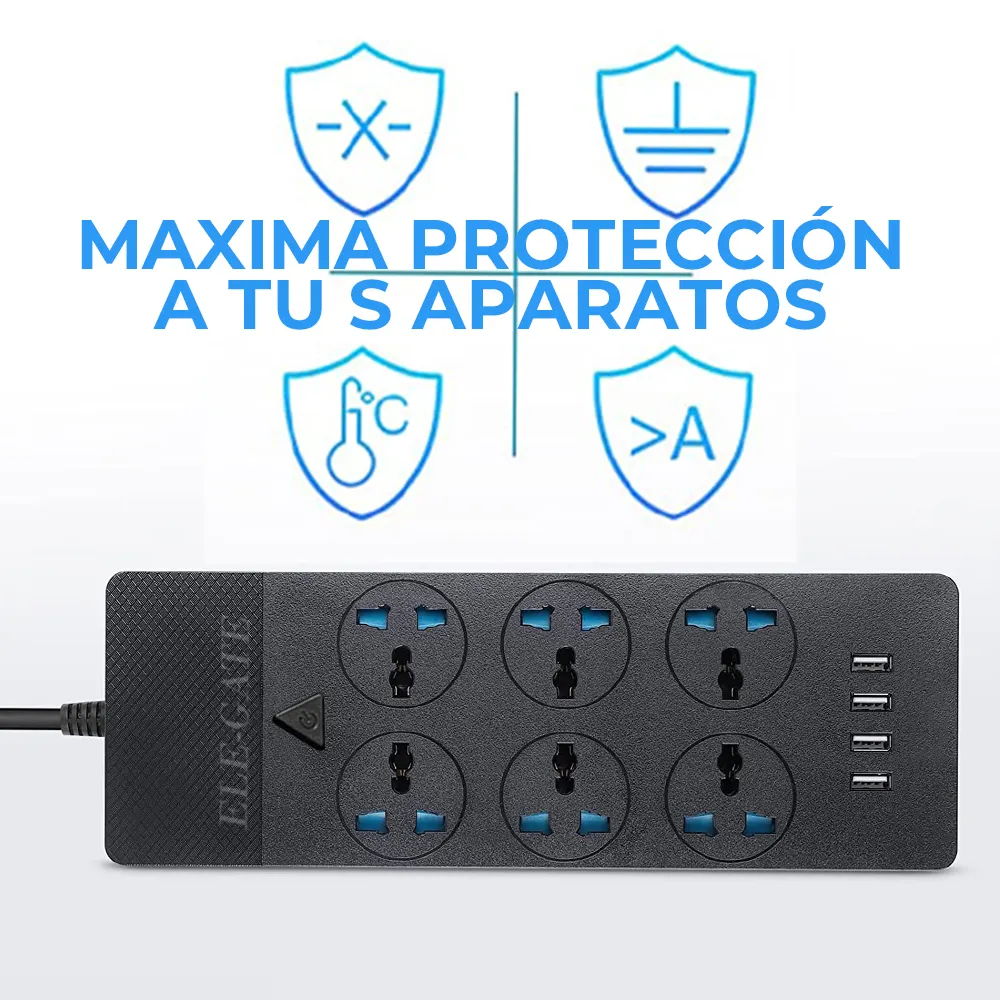 Regleta de alimentación de escritorio con 6 tomas de corriente, 4 puertos de carga USB.