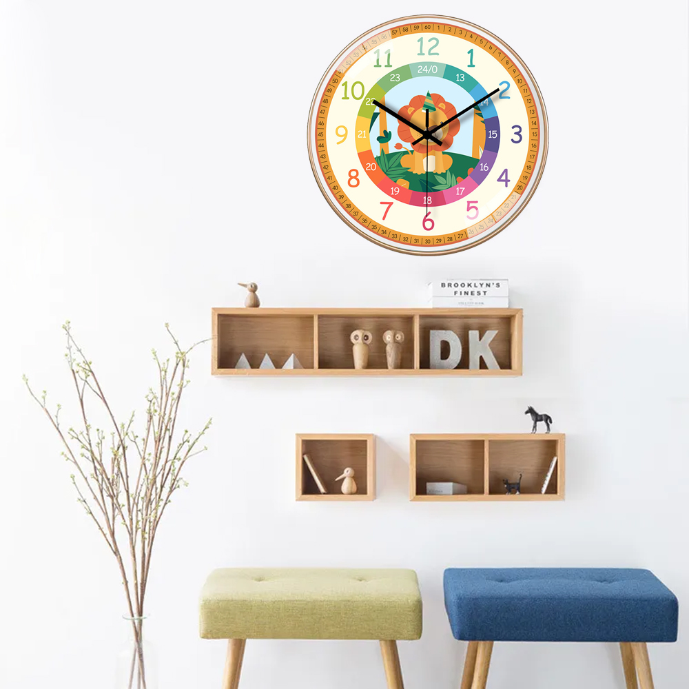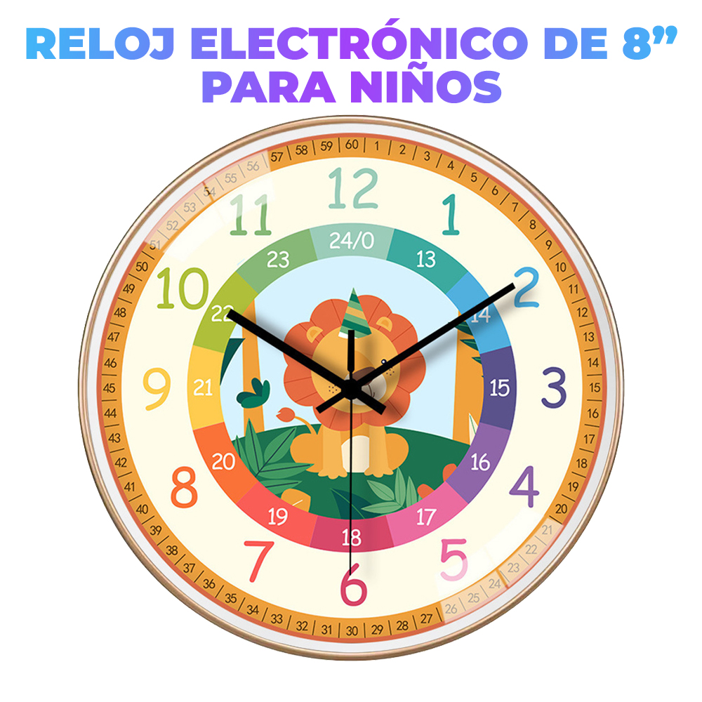 - Bonito diseño de arcoíris de 25 cm: este reloj grande es colorido con un buen esquema de coloración en su cara, manos bien etiquetadas, números blancos que crearán interés para que los niños lo miren y aprendan a leer el reloj. Cada brazo está etiquetado para que los niños puedan notar la diferencia entre la manecilla de la hora, la manecilla de los minutos y la segunda.