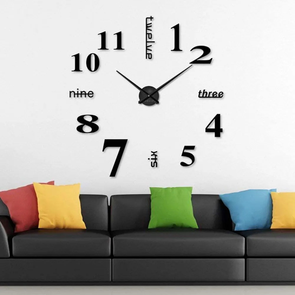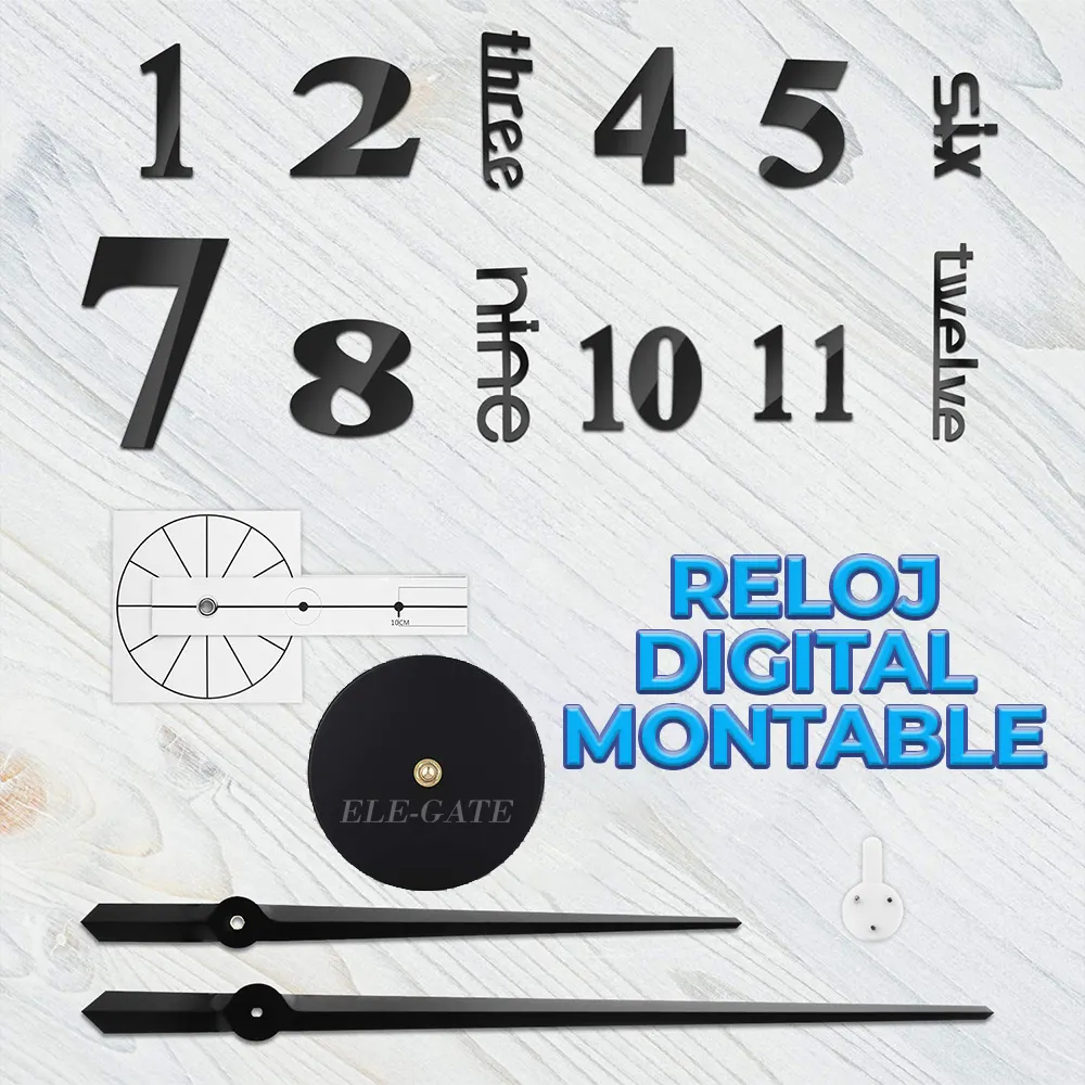 Reloj de Pared Grande en 3D sin Marco, Reloj de Pared Moderno y silencioso montable.