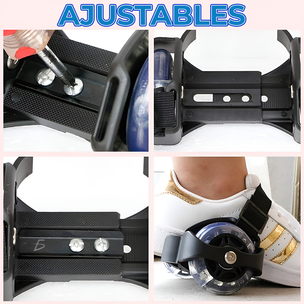 Juego de ruedas para tenis ajustables con luces LED multicolor. Fáciles de colocar y perfectas para que los niños aprendan equilibrio mientras se divierten con estilo y seguridad.