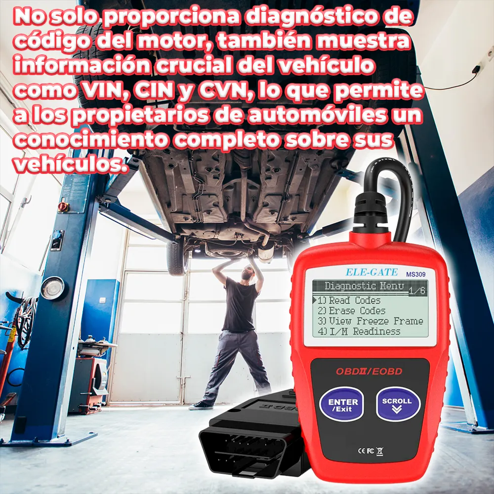 - Diagnóstico Completo del Vehículo: Escanea y lee los códigos de error del motor para identificar problemas específicos.