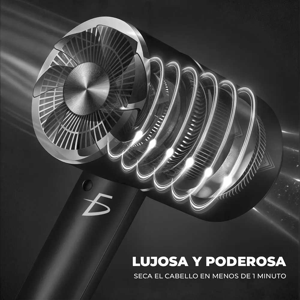 Tiene un Fuerte viento para mejorar la eficiencia del cabello seco y reducción de ruido