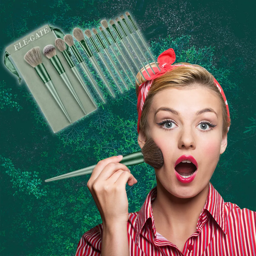 Descubre el Set de 13 Brochas Color Esmeralda con Mango Barnizado, la elección definitiva para un maquillaje impecable. Este set exclusivo incluye una variedad de brochas diseñadas para delinear, definir y perfeccionar cada detalle de tu rostro.