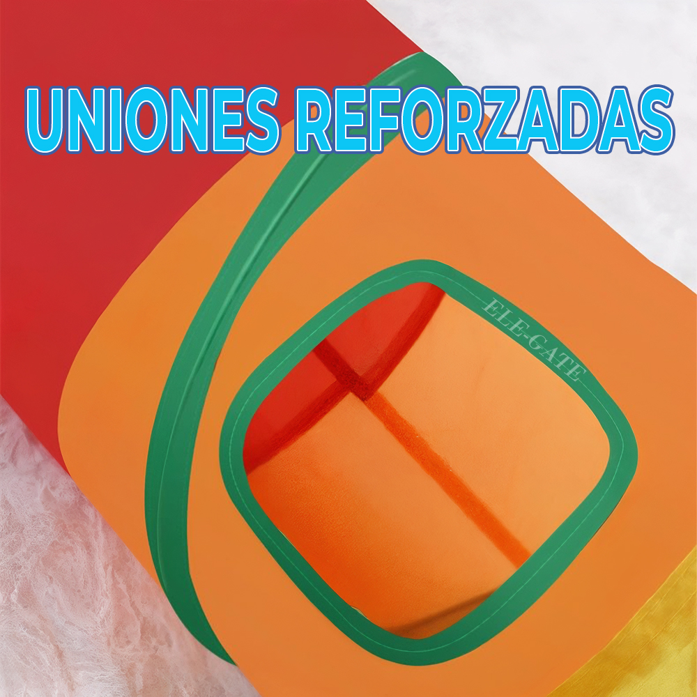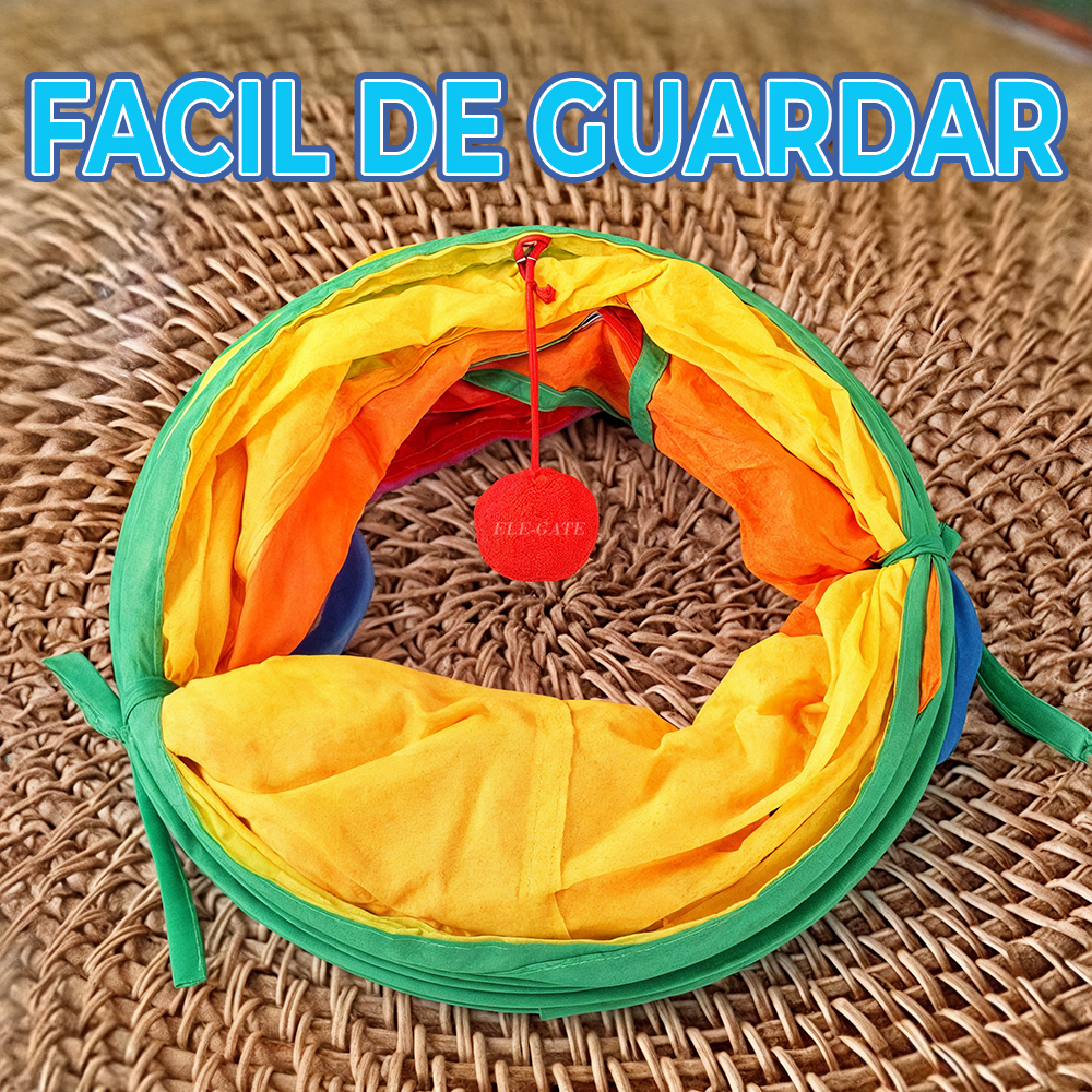 Túnel triple plegable: Ideal para esconderse, jugar y ejercitarse; se guarda fácilmente y ocupa poco espacio.