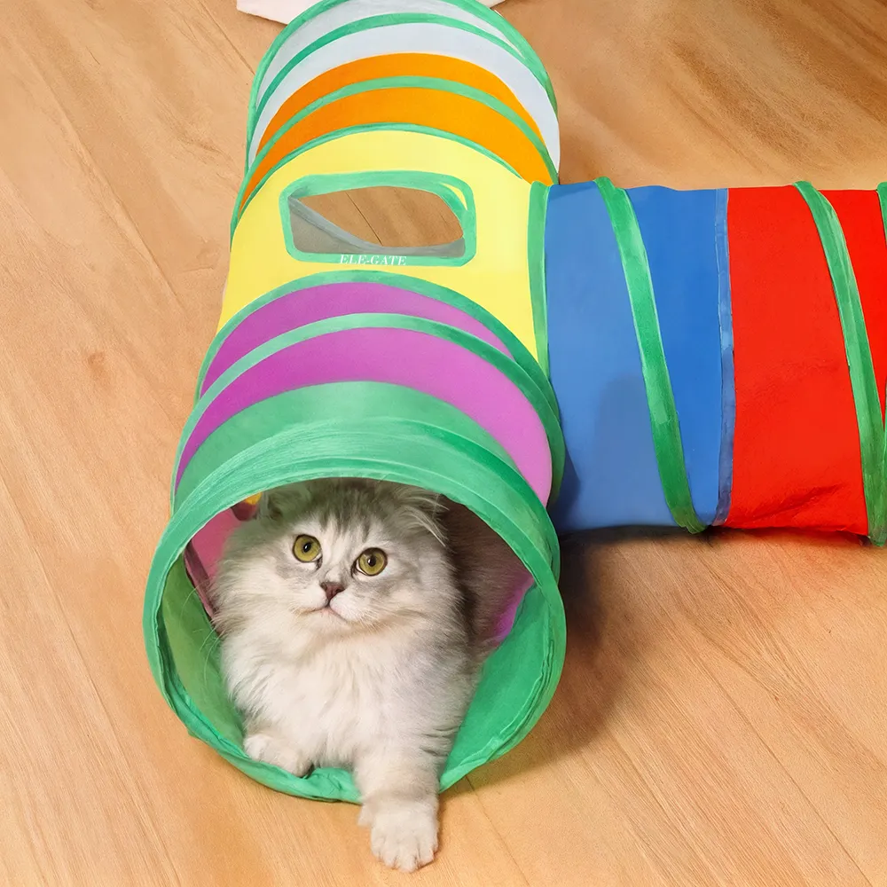 Fabricados con materiales resistentes y seguros, estos juguetes son ideales para gatos de todas las edades y también para cachorros que disfrutan de explorar y jugar. Una solución práctica y divertida para entretener a tus mascotas en casa todos los días.
