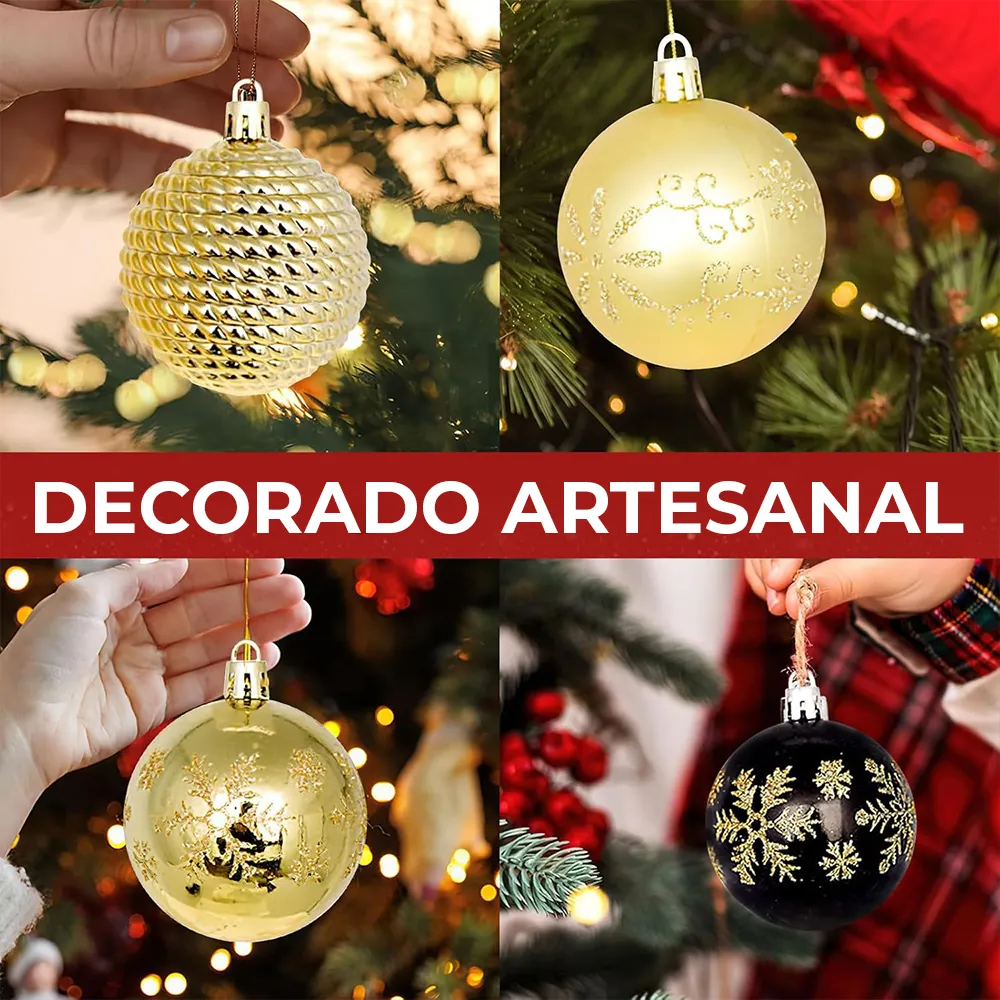 Diseñadas con acabados artesanales y diferentes tamaños, estas esferas crean una decoración equilibrada y elegante, perfecta para cualquier estilo navideño.