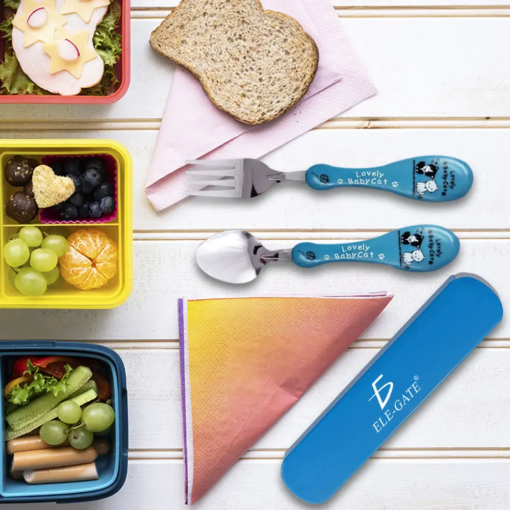 Juego de cubiertos para niños con caja de acero inoxidable de alta calidad, duradero y duradero. Apto para lavavajillas, sin BPA, producto no tóxico. Los cubiertos para niños son seguros para los niños.