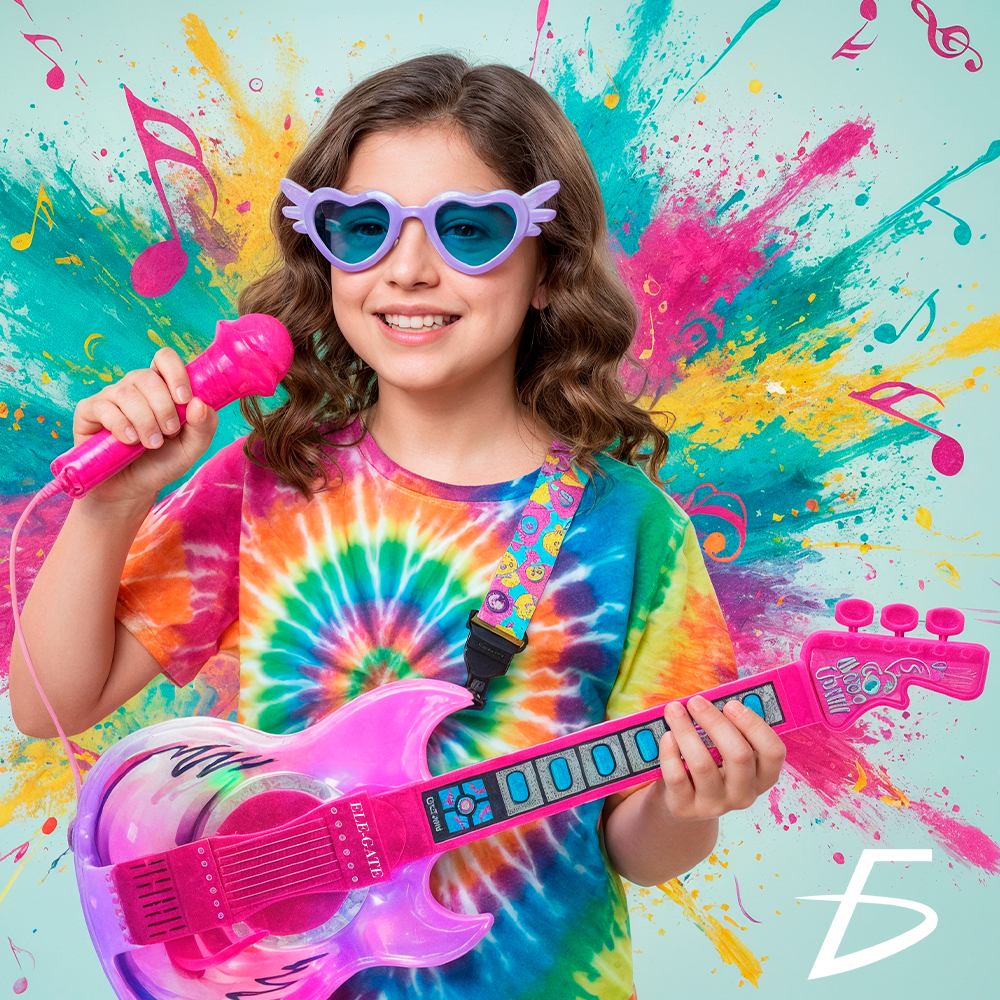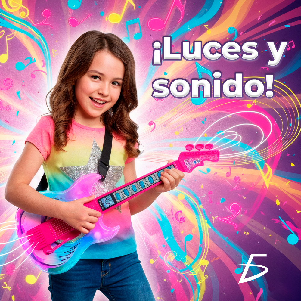 Convierte cualquier rincón de la casa en un escenario con este increíble Set de Guitarra con Micrófono y Lentes de Rockstar, ideal para que tu pequeña se sienta como una verdadera estrella de rock. Con efectos de sonido, luces RGB y conexión de audio, este set musical es perfecto para cantar, tocar y brillar frente a su público.