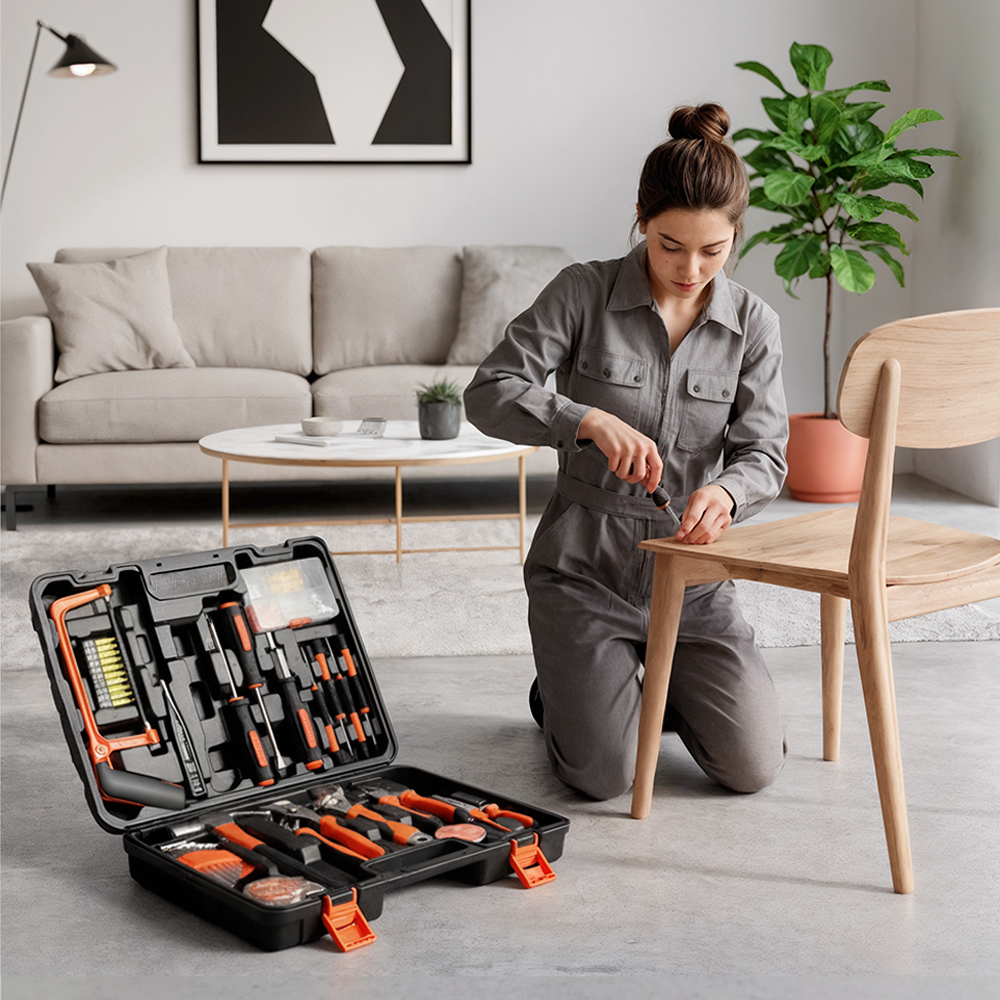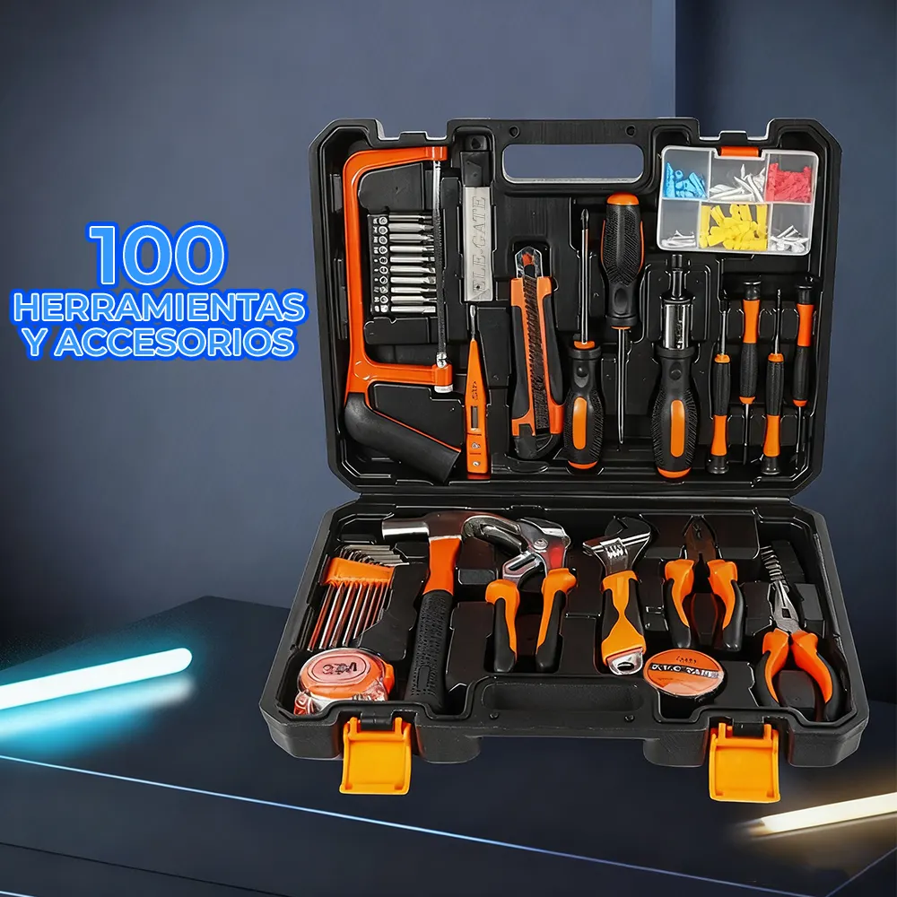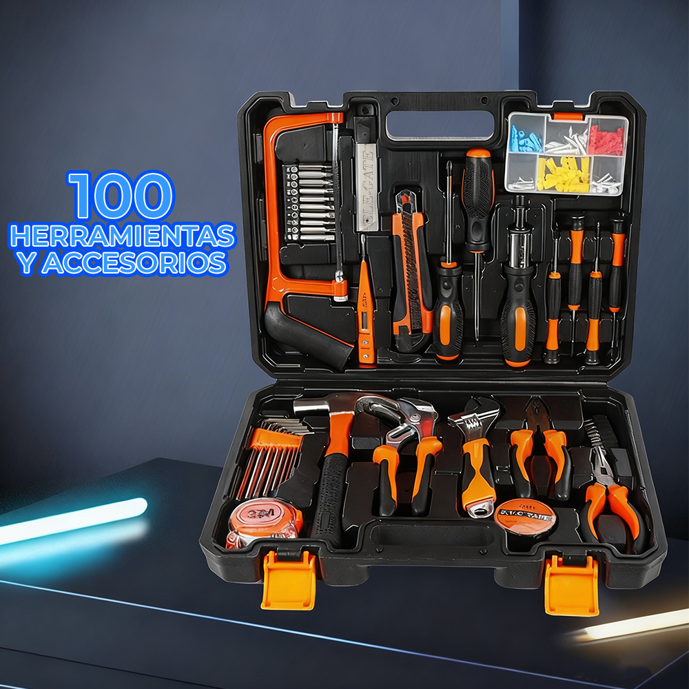 Set completo de 100 piezas para todo tipo de reparaciones en el hogar.