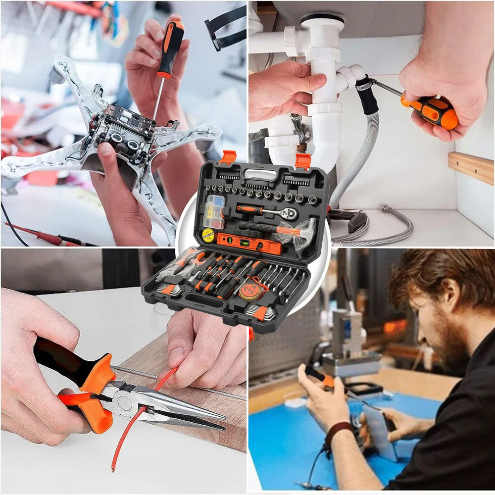Este completo set de 108 piezas es ideal para realizar reparaciones, ajustes y mantenimiento en cualquier área de tu hogar. Viene organizado en un resistente estuche portátil, que mantiene cada herramienta en su lugar y facilita su transporte. Diseñado tanto para principiantes como para quienes disfrutan del bricolaje y trabajos domésticos.