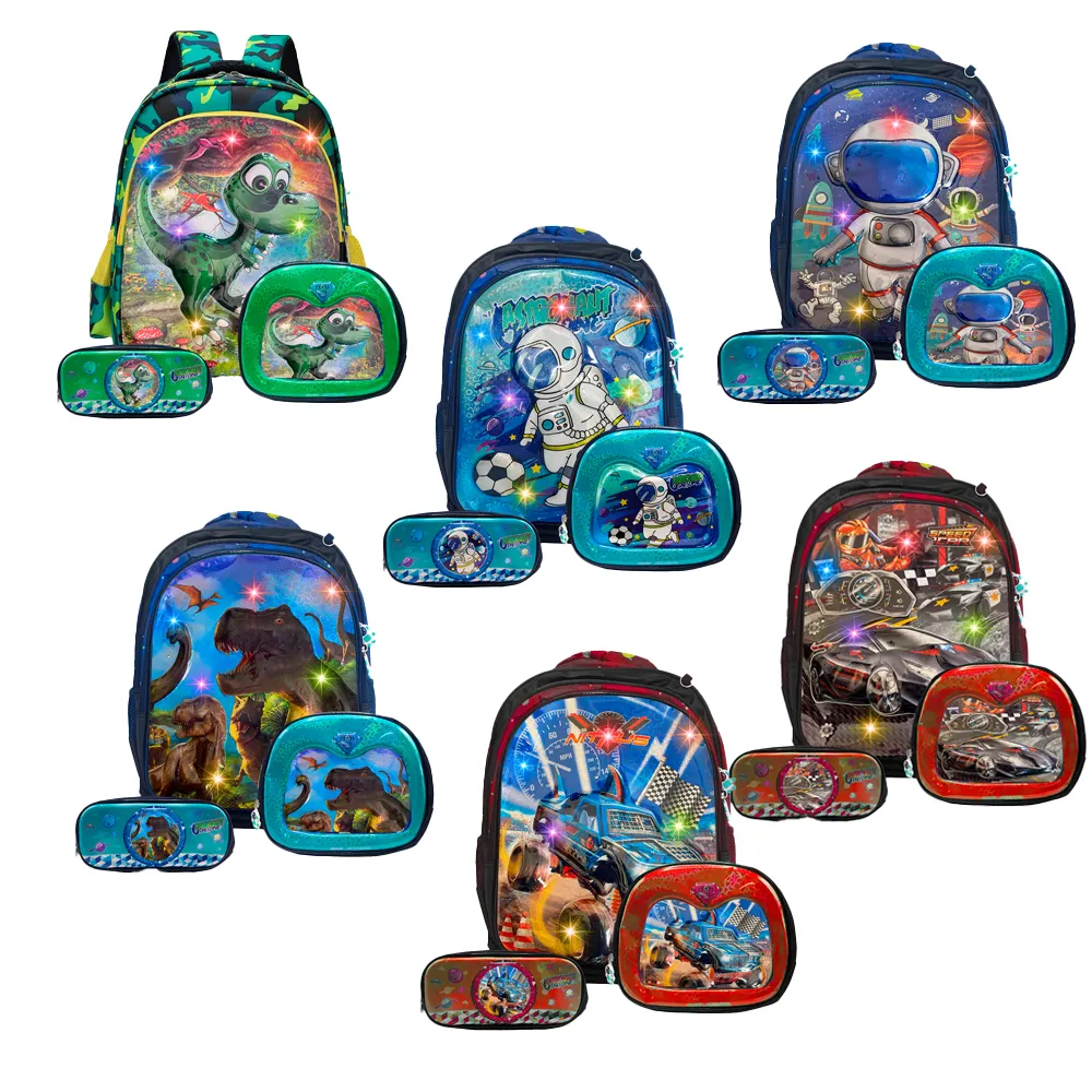 Set de Mochila Galáctica Escolar con Lapicera y Lonchera Térmica con Luces Leds RGB .Las luces leds se prenden al contacto con estampados Galácticos ideales para que tus pequeños brillen en el colegio.